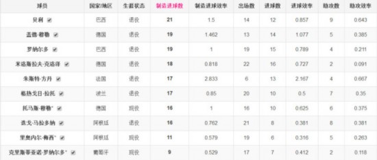 那么,梅罗的数据在世界杯历史上处于怎么样的位置呢?
