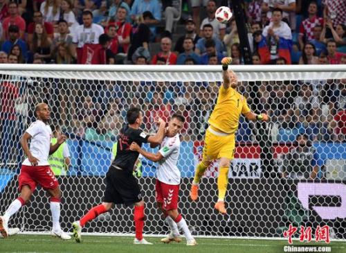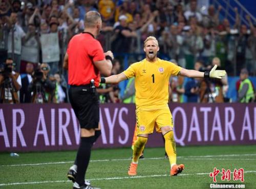 中新社记者 毛建军 摄"> 整场比赛,丹麦队守门员小舒梅切尔格外神勇。 中新社记者 毛建军 摄 中新网客户端下诺夫哥罗德7月2日电(记者 王牧青) 惜败于点球大战,是足球比赛最残酷的失败方式。当地时间1日晚,丹麦在点球大战中被克罗地亚淘汰,无缘俄罗斯世界杯的八强。不过,加时赛扑出莫德里奇绝杀点球的丹麦门将小舒梅切尔,赛后被评为当场最佳球员。 加上点球大战先后扑出巴德利和皮瓦里奇的射门,小舒梅切尔全场共化解了3记点球。作为输球的一方,国际足联将全场最佳的荣誉授予他,足见对他表现的肯定。 然而,神勇的小舒梅切尔终究没能拯救丹麦队,克罗地亚门将苏巴西奇在点球大战扑出3球,成为“格子军团”杀进八强的英雄。