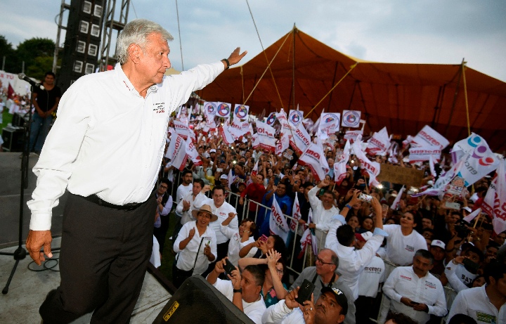 在这场六年一次的墨西哥总统选举中,左翼候选人安德烈斯·曼努埃尔·洛佩斯·奥夫拉多尔获得至少53%的选票。