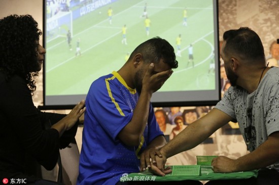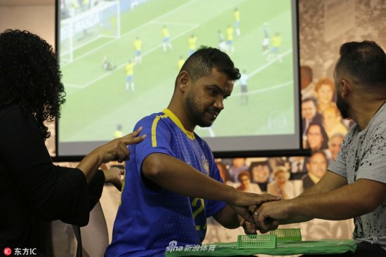 当地时间2018年7月2日,巴西圣保罗,巴西足球人人参与,圣保罗聋盲人体验世界杯。