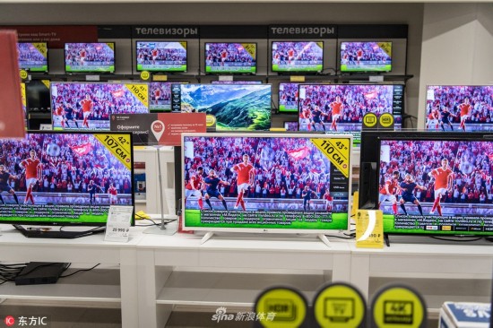 当地时间2018年6月,俄罗斯,2018世界杯持续升温,俄罗斯各地随处可见大屏幕播放精彩赛事。