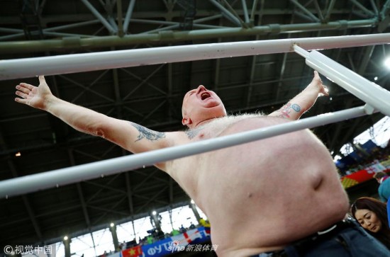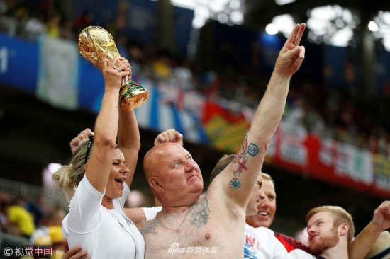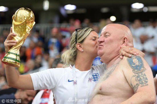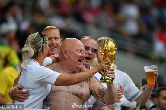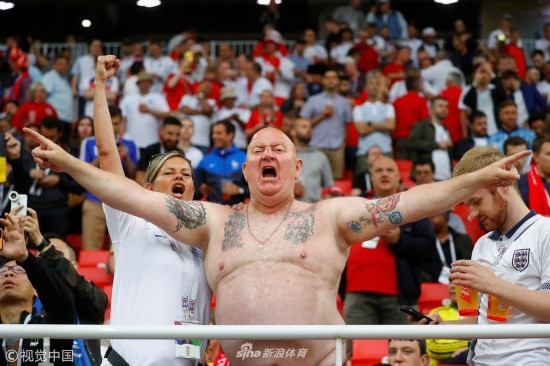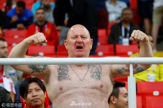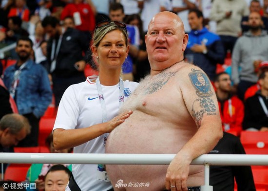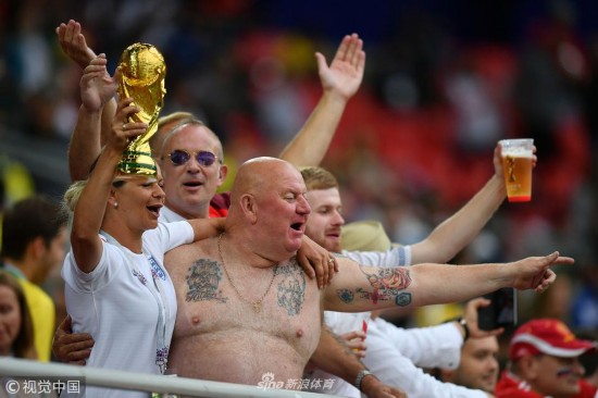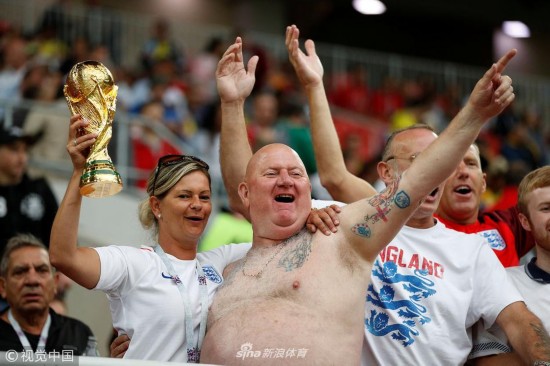 北京时间7月4日,世界杯1/8决赛最后一场比赛,英格兰vs哥伦比亚,赛前,一位看台上的英格兰球迷十分引人眼球。 |